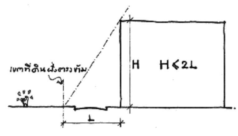 จากรูปด้านบน สรุปใช้วัดจากริมอาคารด้านที่ติดถนน ไปที่แนวเขตที่ดินฝั่งตรงข้าม...